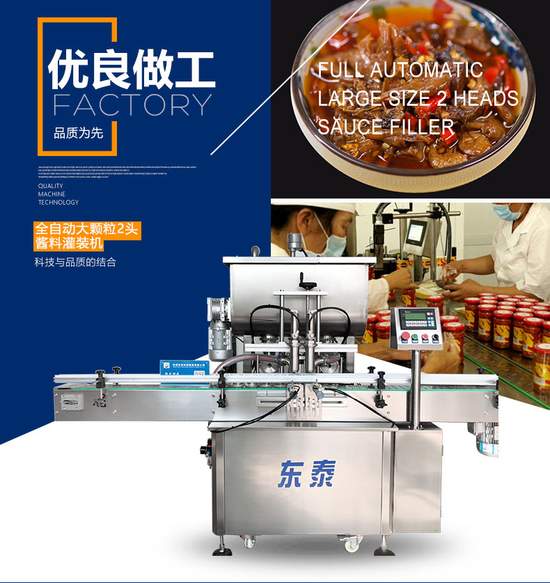 該系列灌裝機(jī)采用活塞式氣缸氣動原理,適用于調(diào)味品中帶顆粒并且濃度較大的香菇醬、辣椒醬、豆瓣醬、花生醬、芝麻醬、果醬、牛油火鍋底料、紅油火鍋底料等較為粘稠醬類的灌裝。灌裝轉(zhuǎn)閥可以很具客戶物料定做加大,以適應(yīng)不同客戶物料的灌裝需求。
