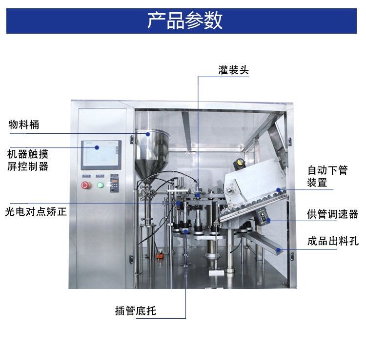 A、RGNF-30適用于醫(yī)藥、食品、化妝品、日用化工用品等行業(yè)的塑管、鋁塑復合管灌裝封尾需要?蓪⒏鞣N  糊狀、膏狀、粘度流體等物料順利準確地注入軟管中,并完成管內(nèi)熱風加熱、封尾和打批號、生產(chǎn)日期等。
